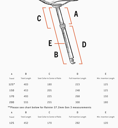 PNW Dropper Rainier Gen 3 Dropper Post, -30mm travel adjust, 125mm travel, 27.2mm
