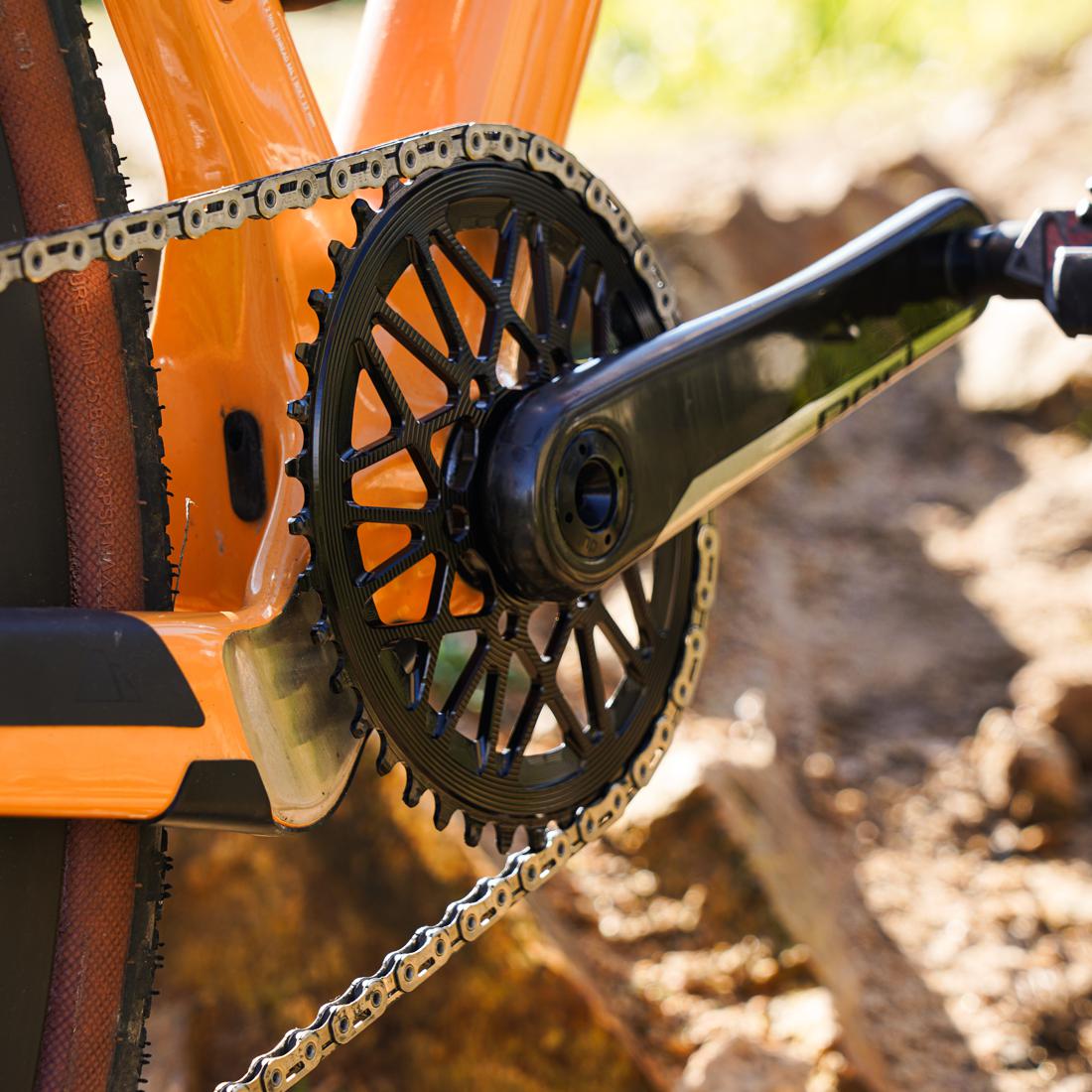 Das absoluteBLACK Direct Mount 1X Oval Kettenblatt wurde speziell für SRAM AXS Road und XPLR Gravel Kurbeln mit 8-Loch-Befestigung entwickelt. Es ist für den Einsatz mit schmalen 11-/12-fach Ketten optimiert und bietet zuverlässige Funktion auch unter schwierigen Bedingungen wie Schlamm und Schmutz.